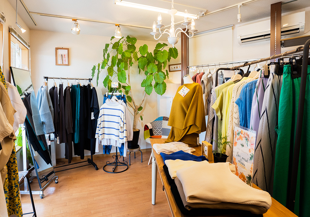 ”きれいめカジュアル”をコンセプトに、クロシェ(CLOCHE)やパシオーネ(PASSIONE)、カフネ(CAFUNE)、ヤマトドレスをはじめとしたブランドから、おしゃれな大人女性の毎日を彩るトレンドアイテムや1点物を店主がセレクト。